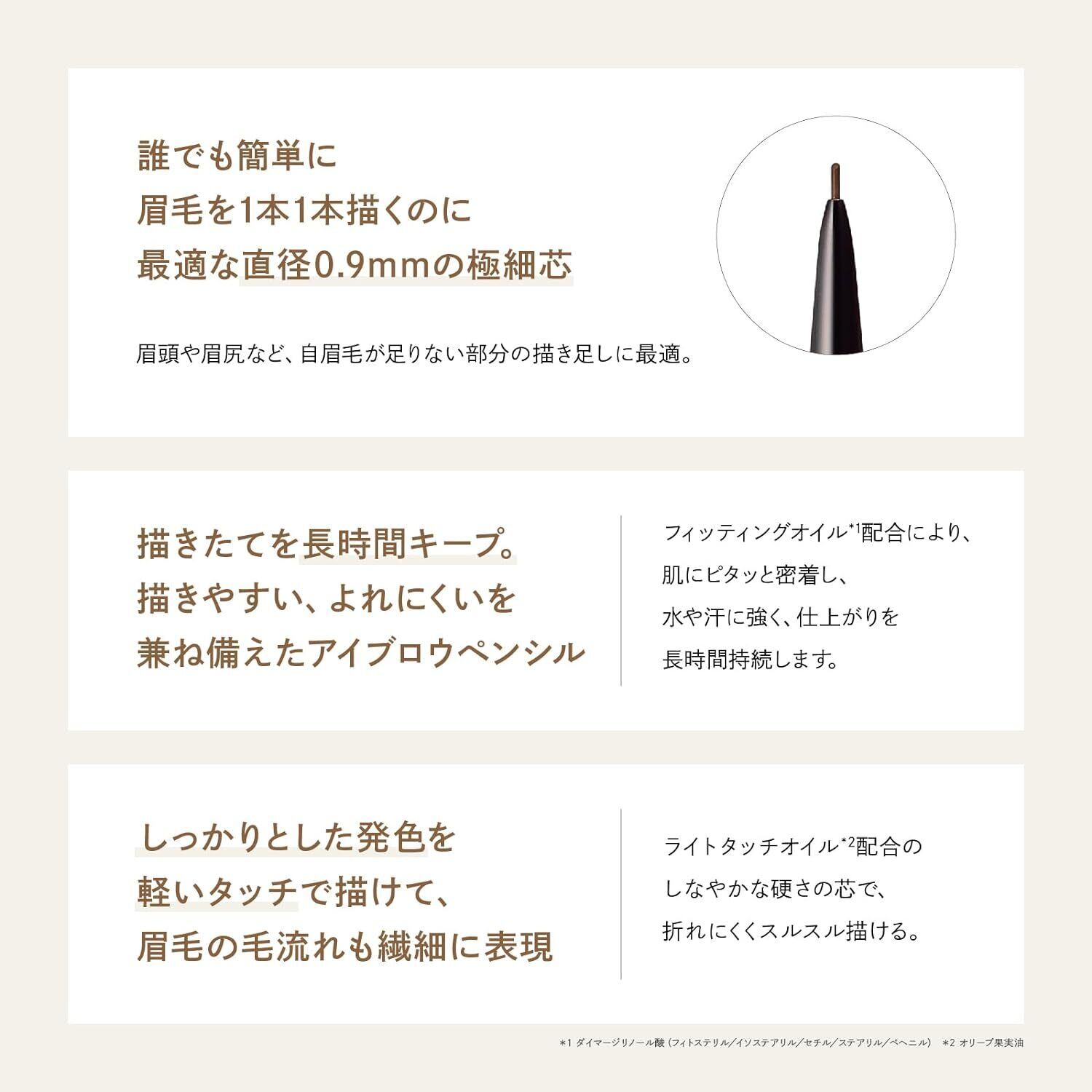 狙ったところに毛を一本一本描き足すことができる0.9mmの業界最細ペンシル。 眉頭や眉尻、自眉毛が足りない部分の隙間埋めに最適です。
